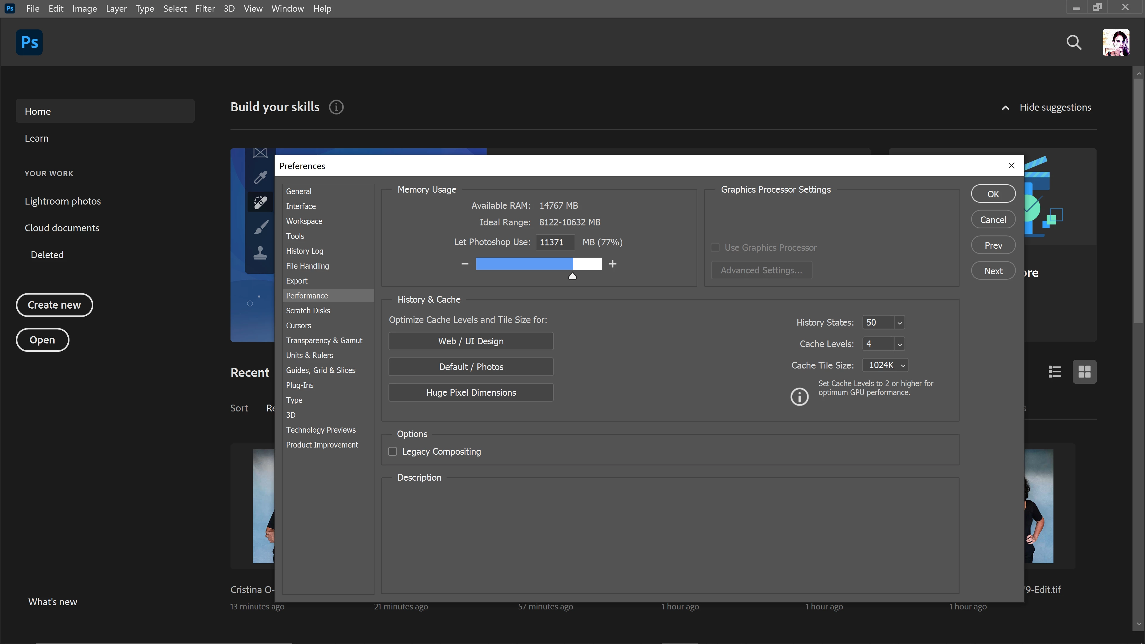 Memory available to Photoshop: 14768 MB