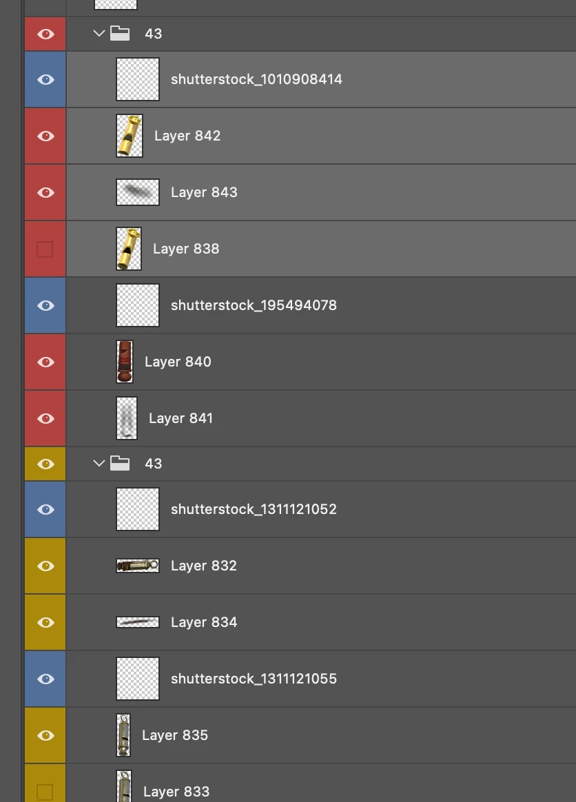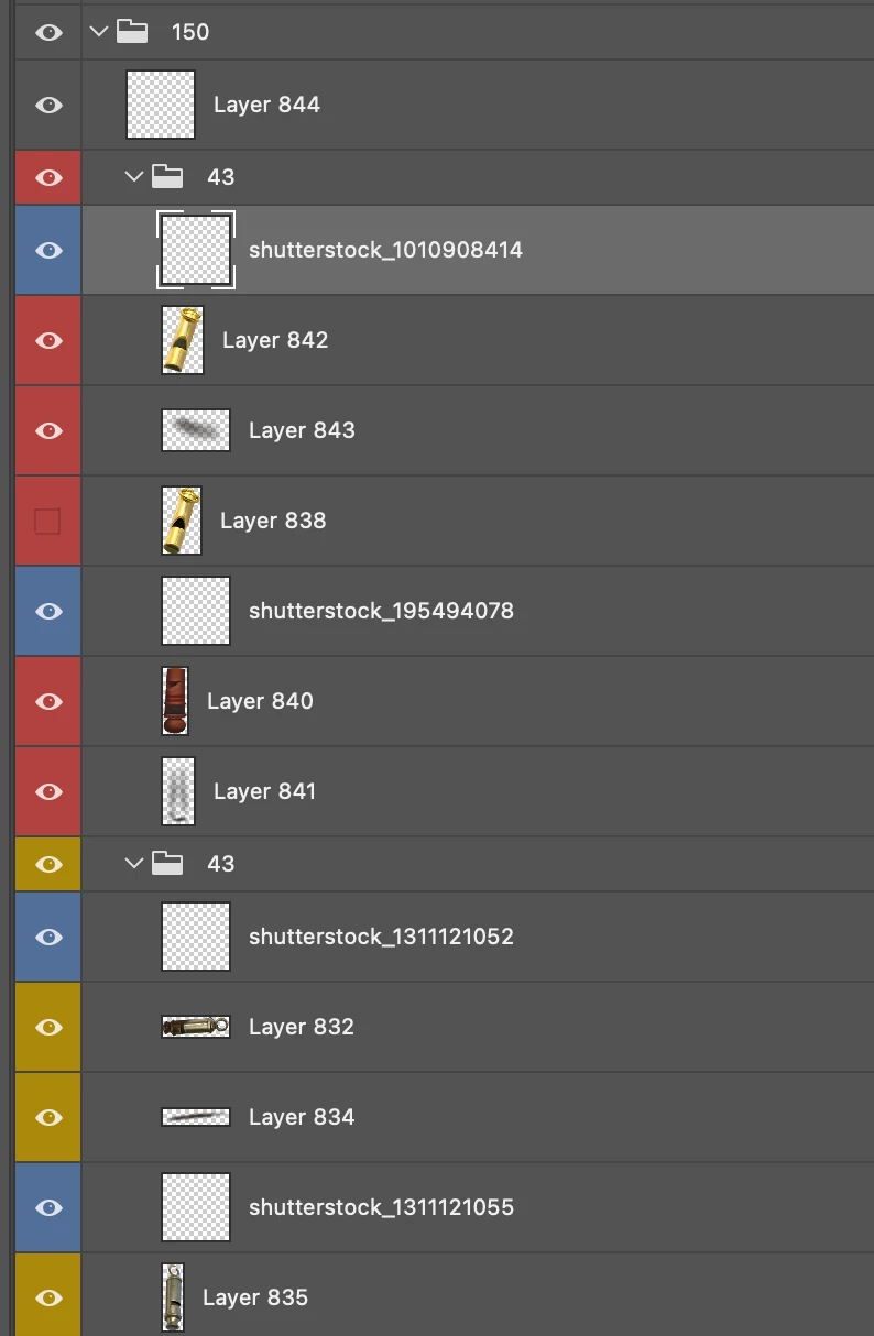 1. Select *shutterstock* layer and every layer below until selection reach to another *shutterstock* layer