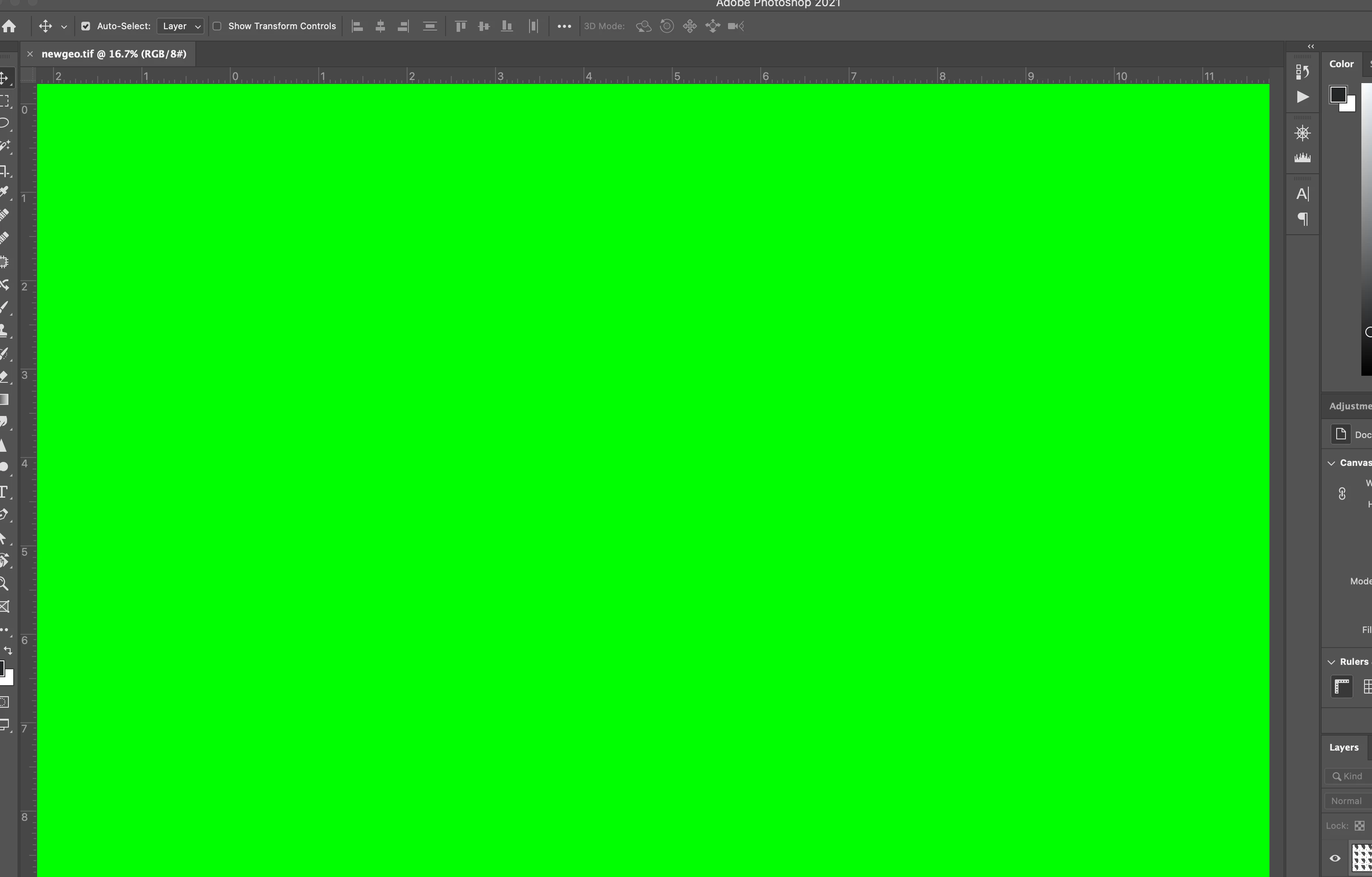 Just started happening last week - when I open Photoshop and attempt to open a file, I get an unusable bright green workspace. If I zoom in and out I can see my image "flicker", so I know the data is there... but the green screen doesn't go away. Below, I've opened newgeo.tif. You can see that the preview loads fine. I'm on a MacBook Pro running Big Sur.