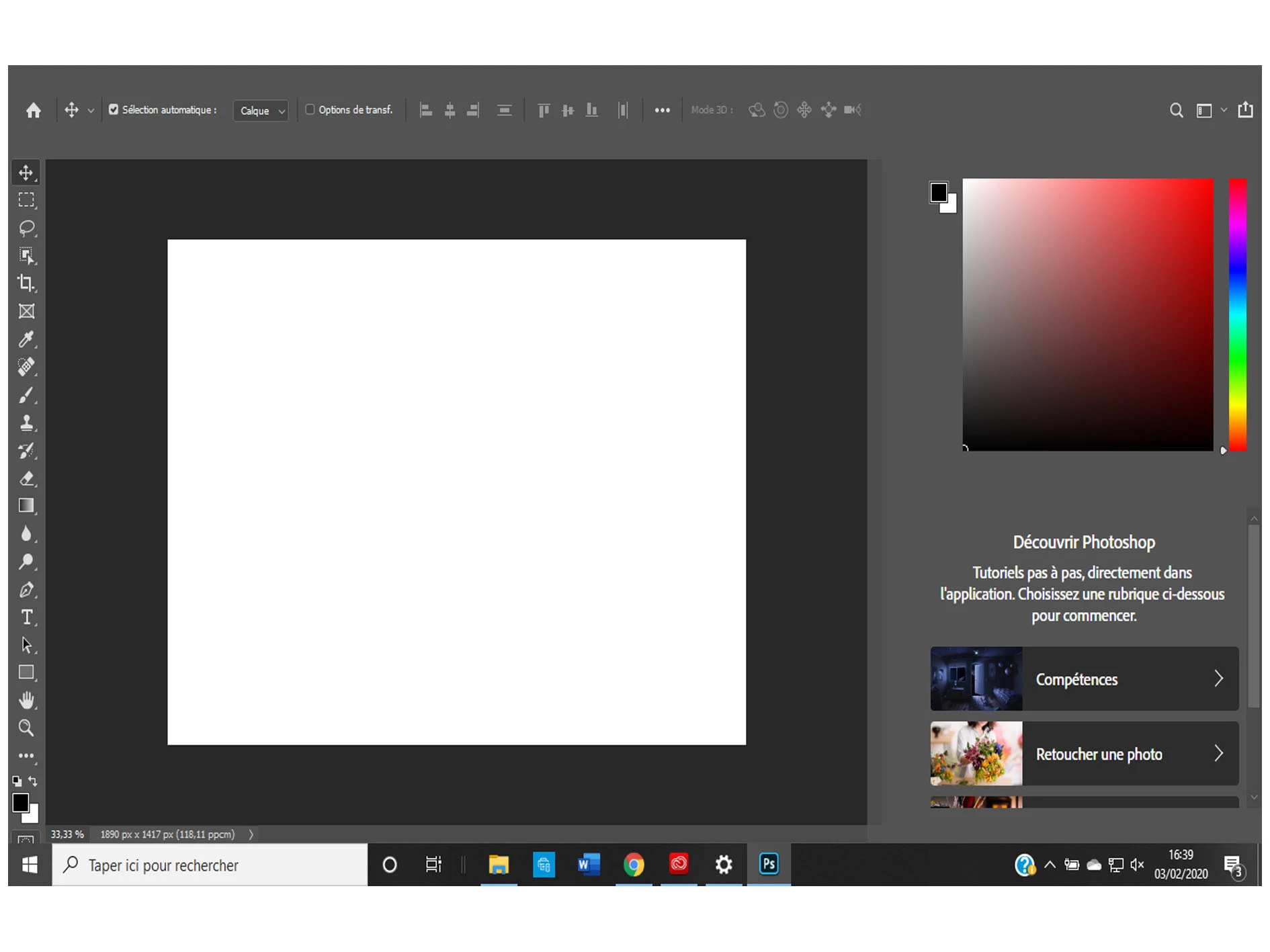 Bonjour, sur Photoshop j'ai un probleme d'affichage de l'interface, on ne voit pas la barre de menu en haut (fichier, edition, menu..) et la partie à droite au niveau des calques ne s'affiche pas correctement non plus..