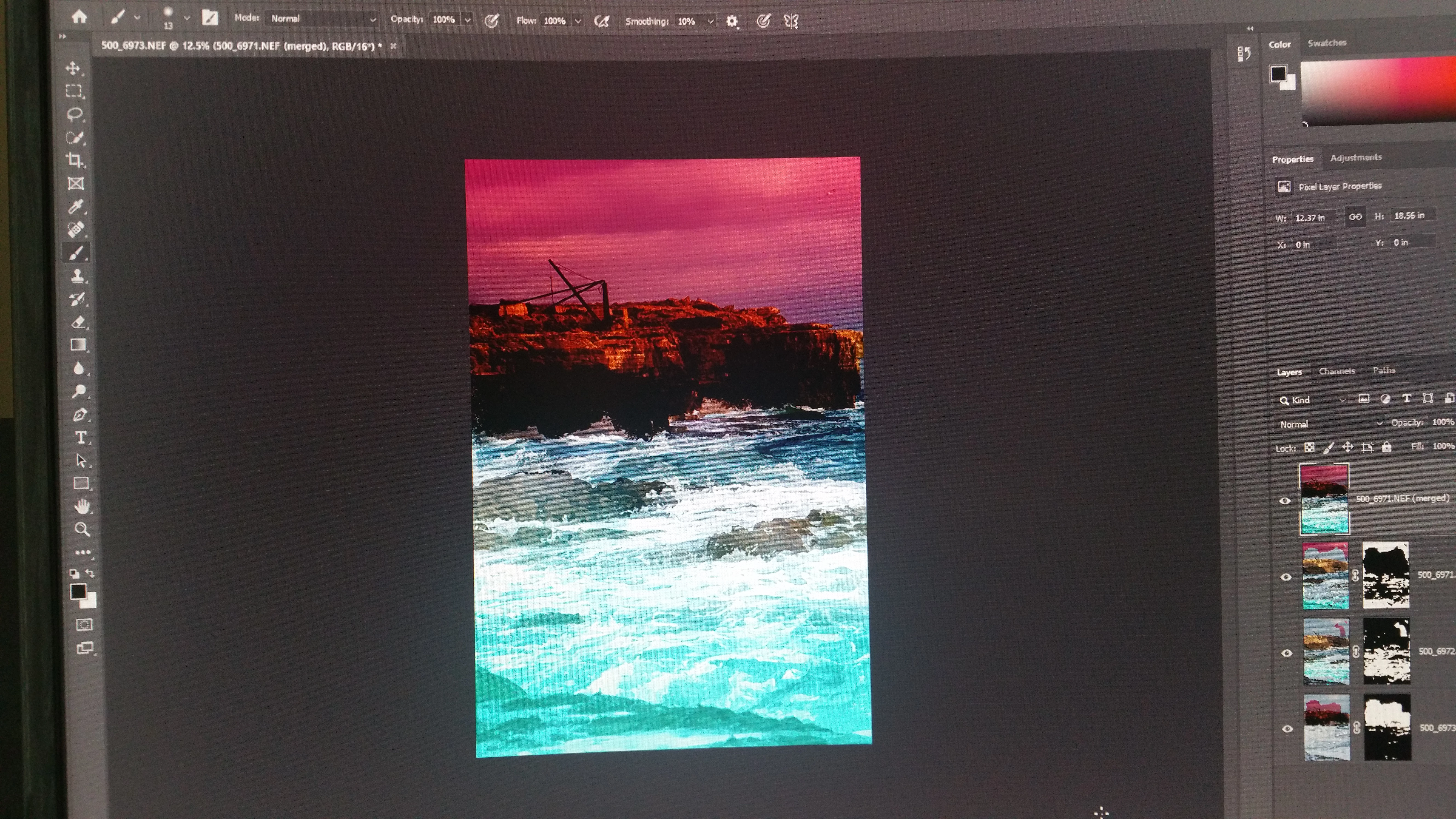I then edit using Auto Blend. The results I get are frankly weird.I get what looks like a graduated mask overlay.