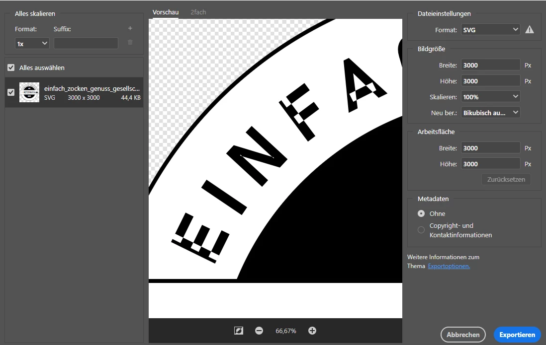 So far so good, if i want to export the image now as svg file, there will appear white blocks in form of the path shapes. First i thought it will be only in the preview, but after the export the little blocks are still there.