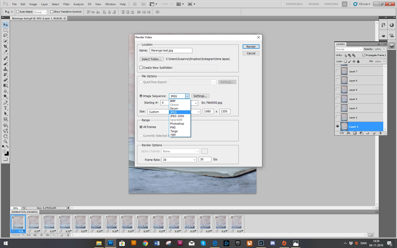 10) Re-open this newly saved GIF in Photoshop (due to the fact that Instagram doesn’t support GIF)