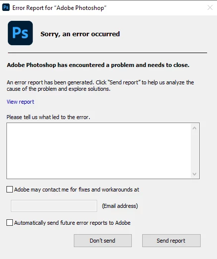 Adobe Photoshop has encountered a problem and need to close ,, i sent the report many time