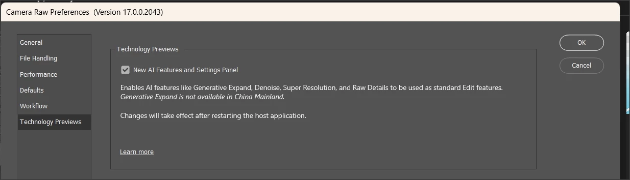 - My ACR preference for technology previews (no options show up)