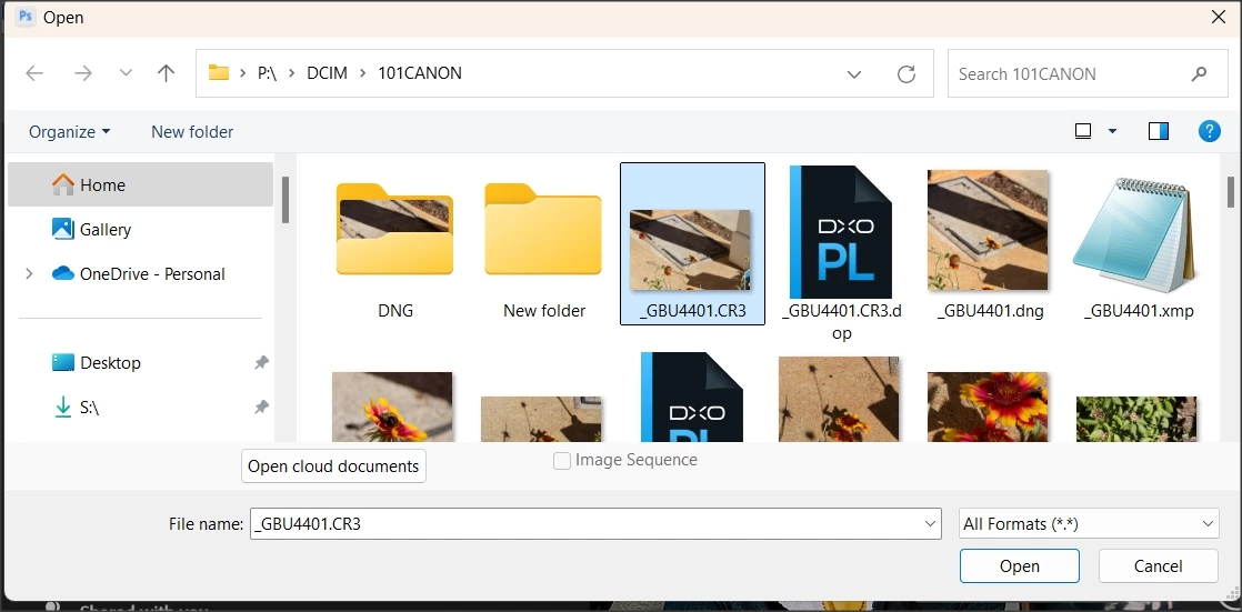 - A Raw file being opened in ACR via Photoshop.