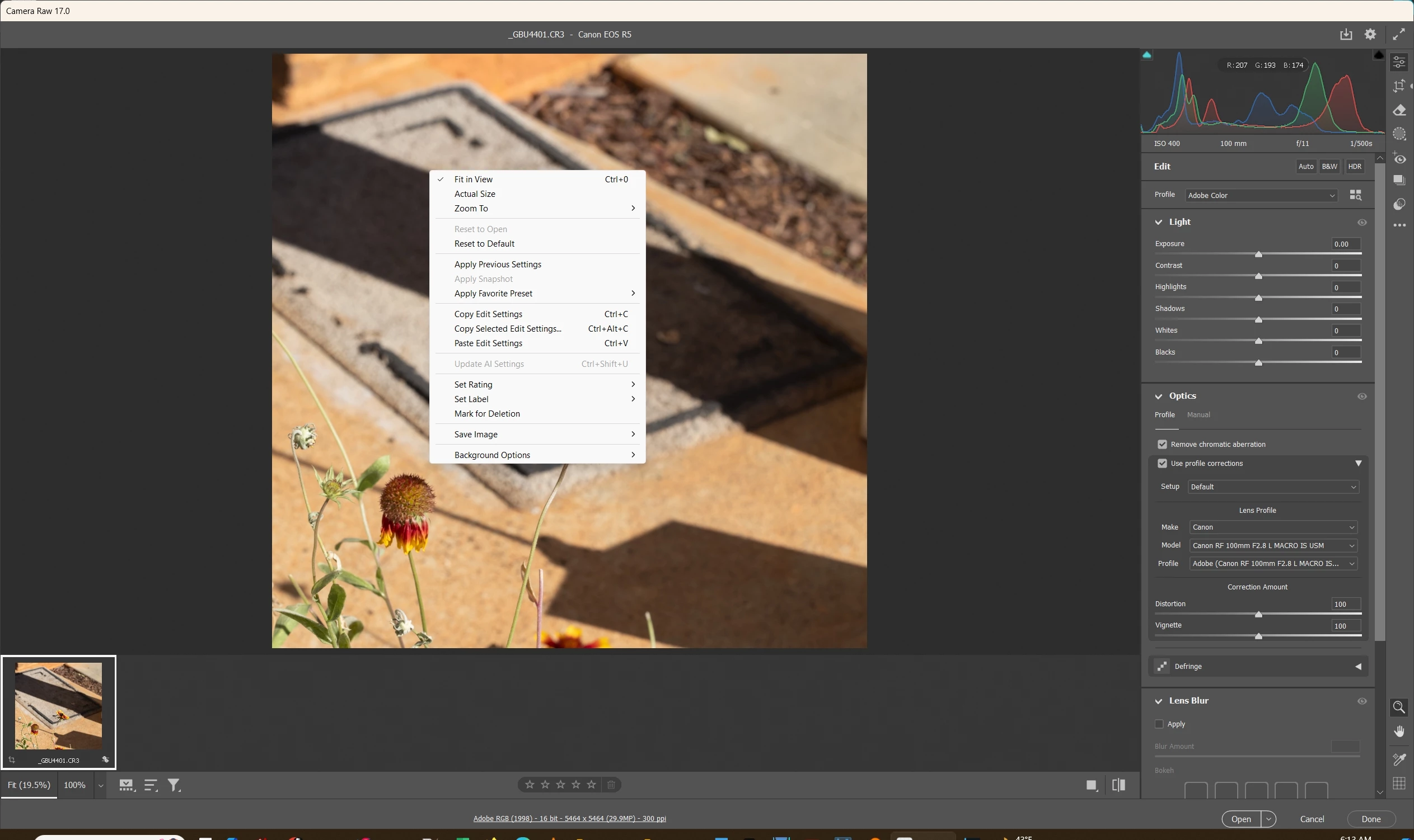 - The context menu for that Raw file when I right click (no Enhance choice shows up)