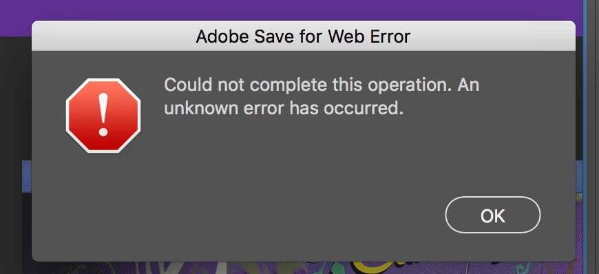 Hello, I'm trying to export a GIF from Photoshop CC (2017) but I keep getting the following error message: