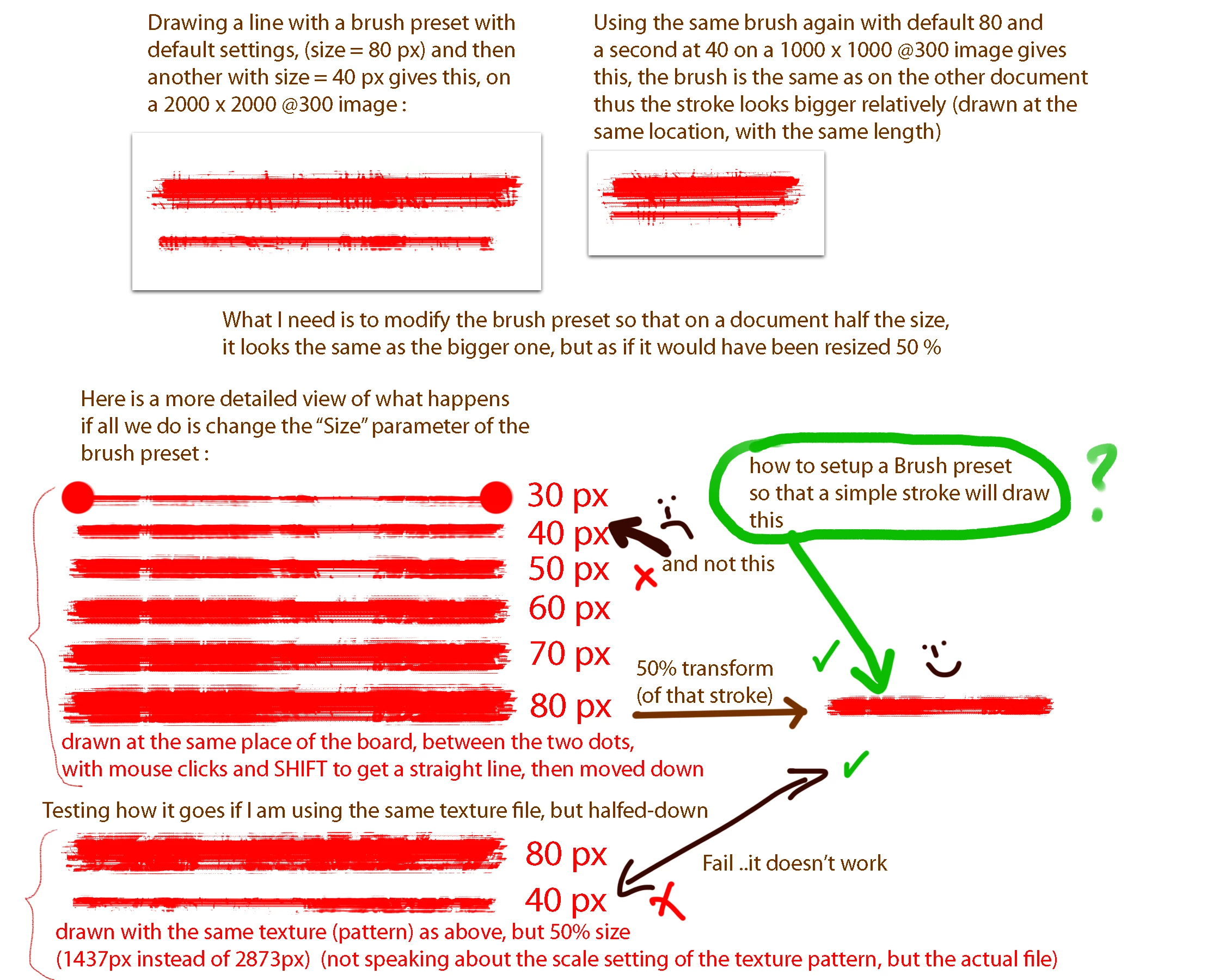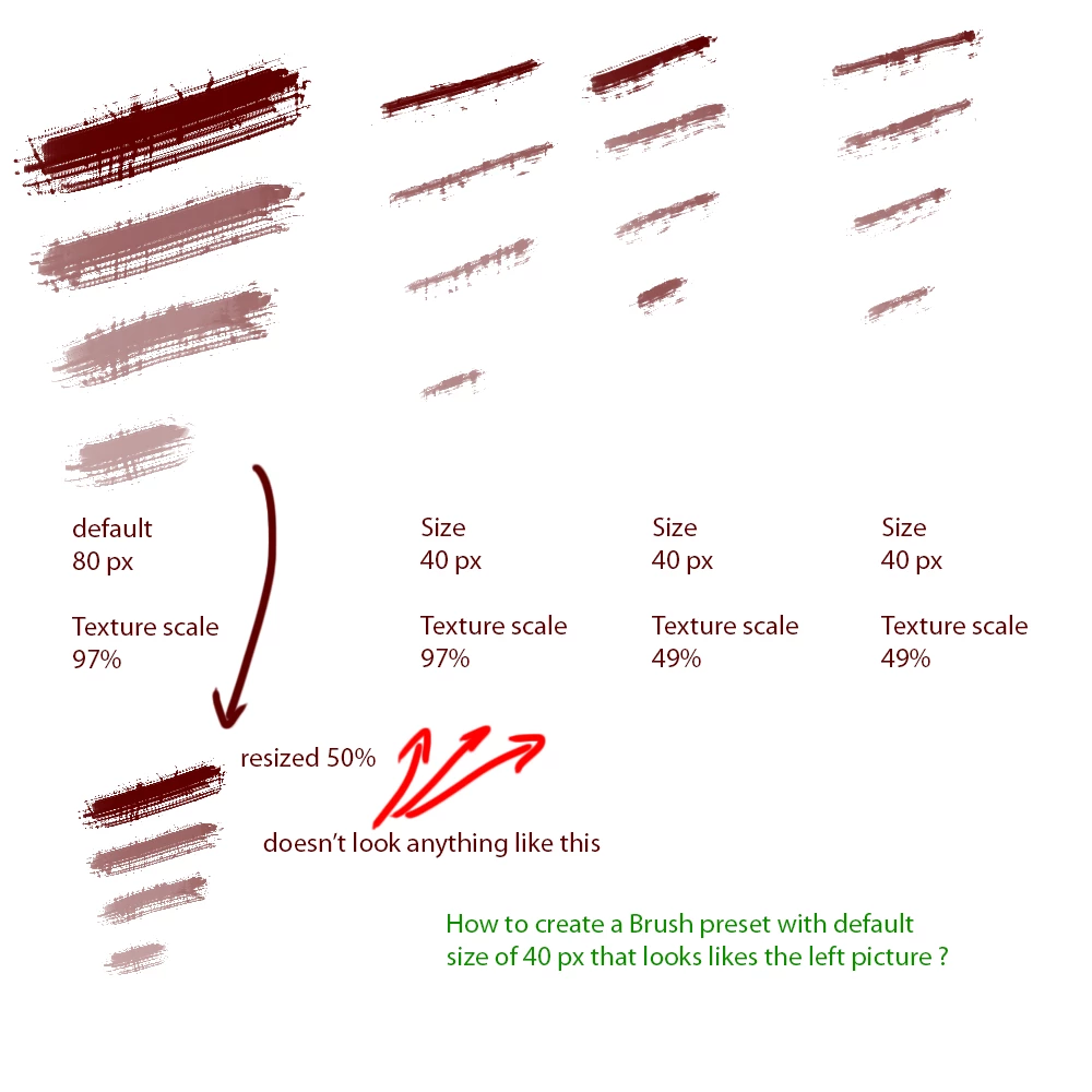 Hello, I have been fighting all day long to achieve this, I am almost giving up, almost because my last hope may be there. Let's see if anyone has the knowledge to help me. As my title says, I need to scale down a brush preset, and by that I litteraly mean it, the Size doesn't cut it, it does not give the result I am looking for.