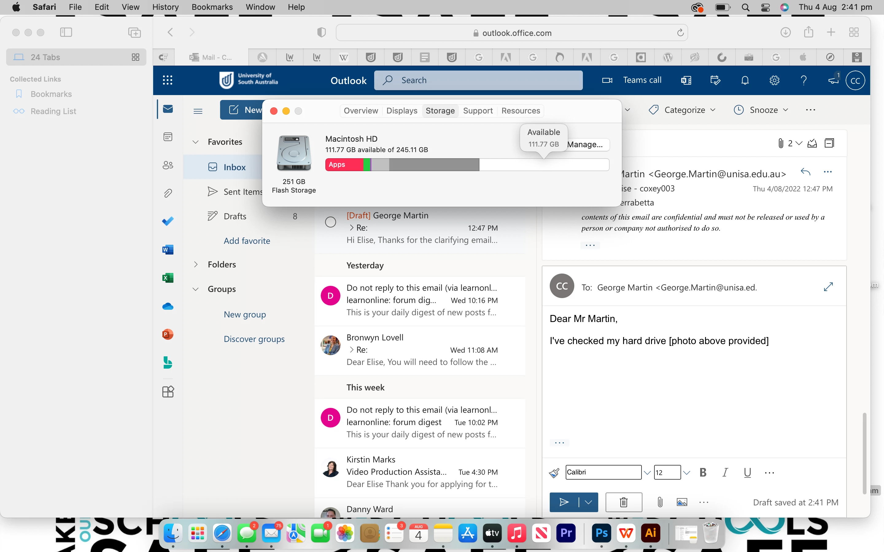 I've checked my hard drive [photo below provided] and it states that i have well over 20GB, so I'm little confused and frustrated as to why my creative cloud apps are not working.