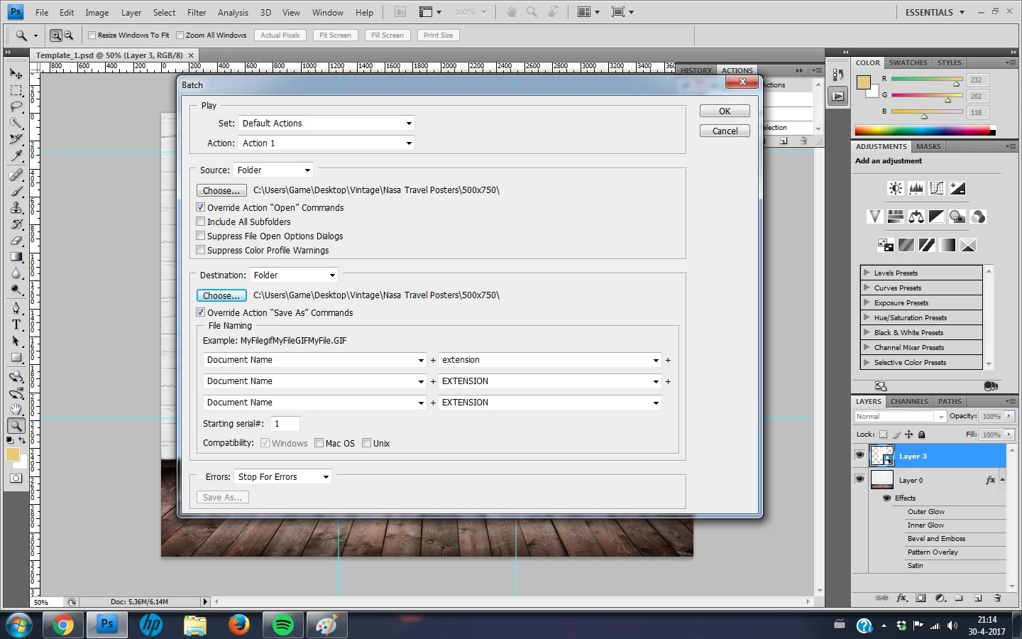 When I select the images one by one, the action does its work, but after the 3rd image it automatically keeps replacing the 3rd image that I did. Is it possible to just select all the images at once and let the action do its work to save all the outcomes at once?
