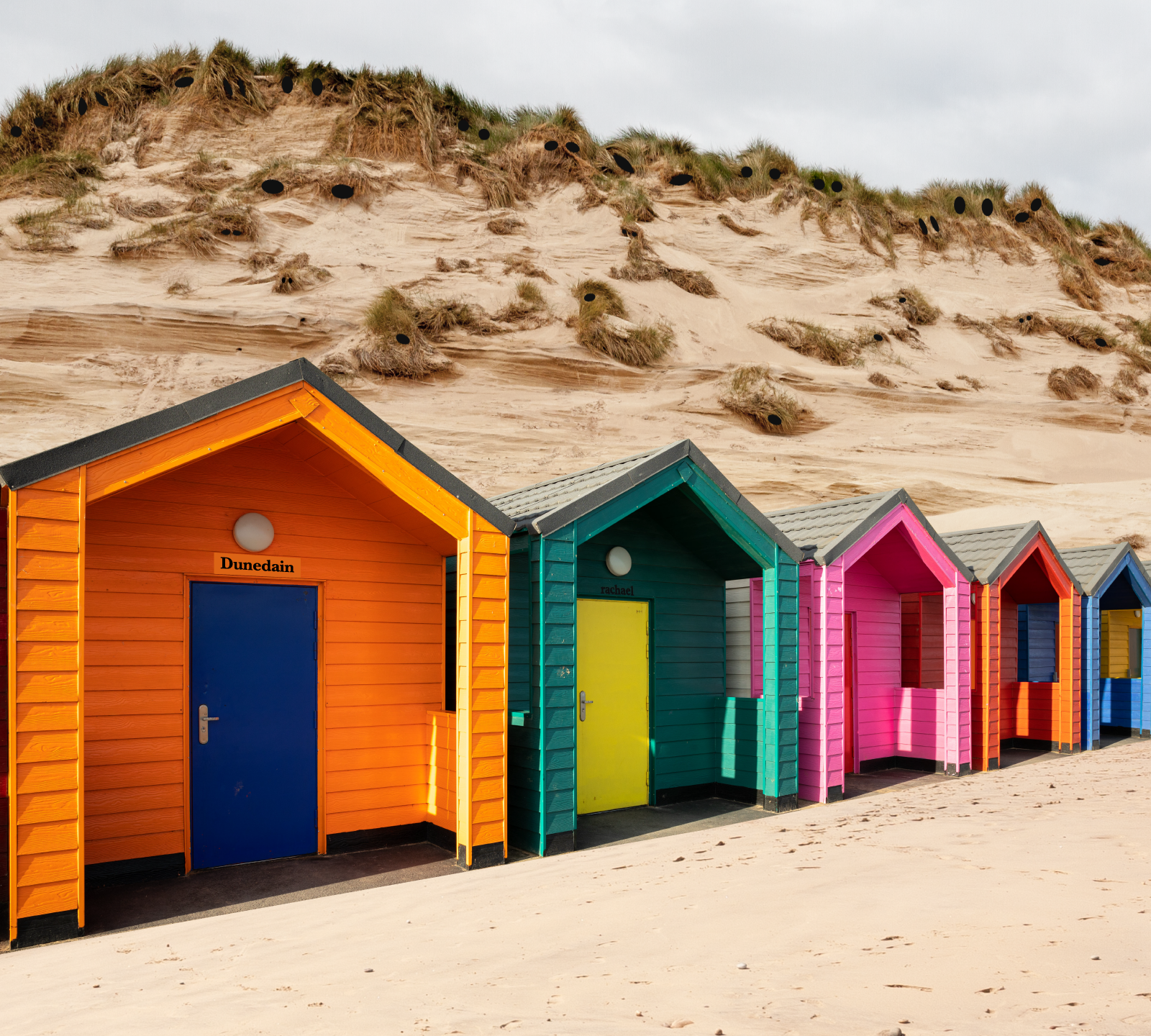 On a morning walk this week, I passed these colourful beach huts at Saltburn-by the Sea. However, they were deserted so early in the day. Can you bring the scene to life?
