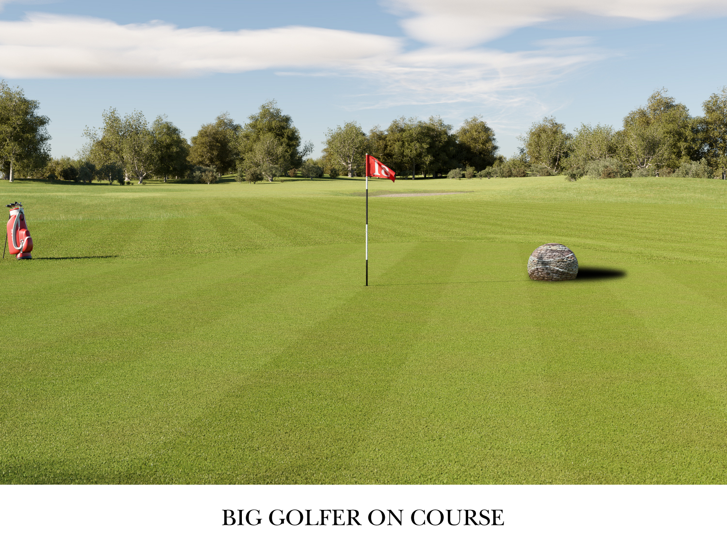 Thank you Jane. Created in Blender 3D using particle systems for the grass and trees and a volume shader to create the clouds. Textures applied via Substance painter and the golf bag is from Adobe 3D assets 🙂