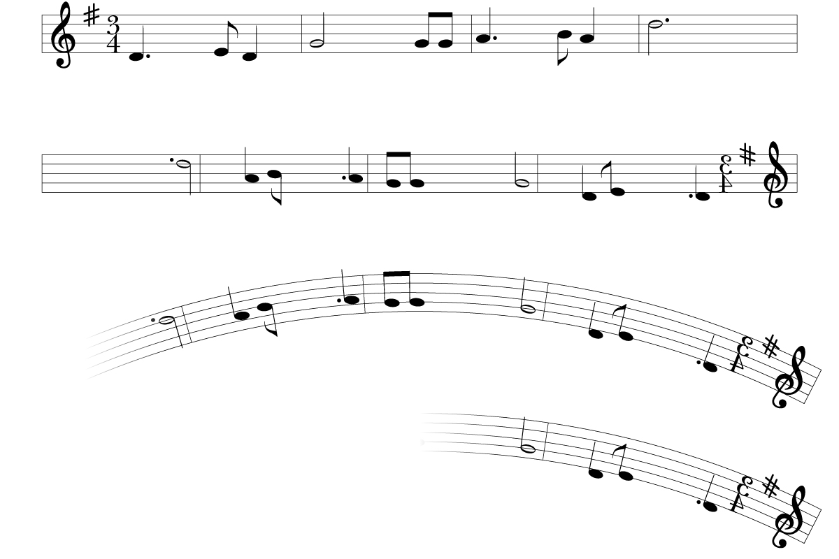 And all the singing on Skye is made from the actual minim, crotchet, and quaver, with some transformations and addition of a custom stave and other bits, all made as a drawing rather than using a sheet application; (like Jane?) I had to reverse the flag on the quaver with the stem facing down. As shown below, to start with, I made it at twice the length to reach the high note, which I believed would be enough in itself to recognize for anyone that has ever heard it, and then I masked out the latter half relying on the rebus support, ready to post it in its entirety if needed.