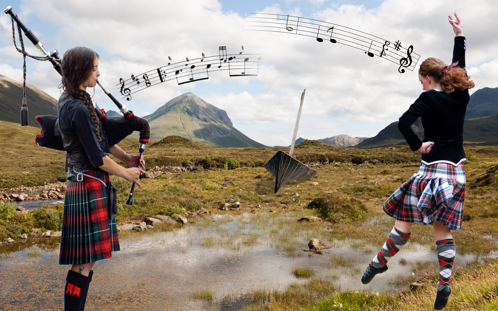 Euan, in the rebus I had wrongly relied on everyone having seen and remembering the Skyescape from SFTW105 to go with the boat from SFTW71 (the mast originating in SFTW34, my first) at the centre of the singing and piping.