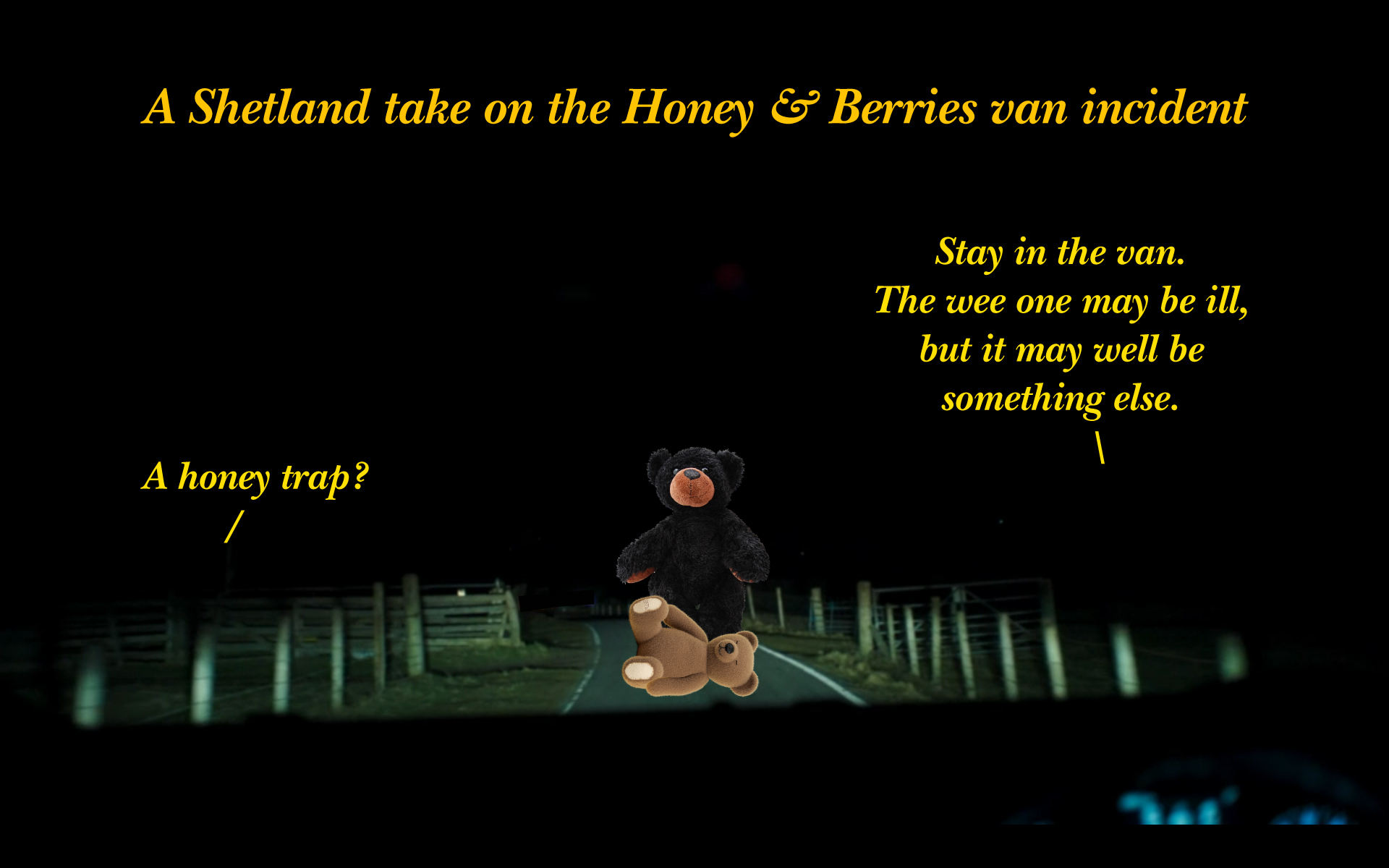 Sorry James, for spotting the latest so late. I saw it as a (dream of being a) teddy > vampire bear, safe in the dark (avoiding spoiler).