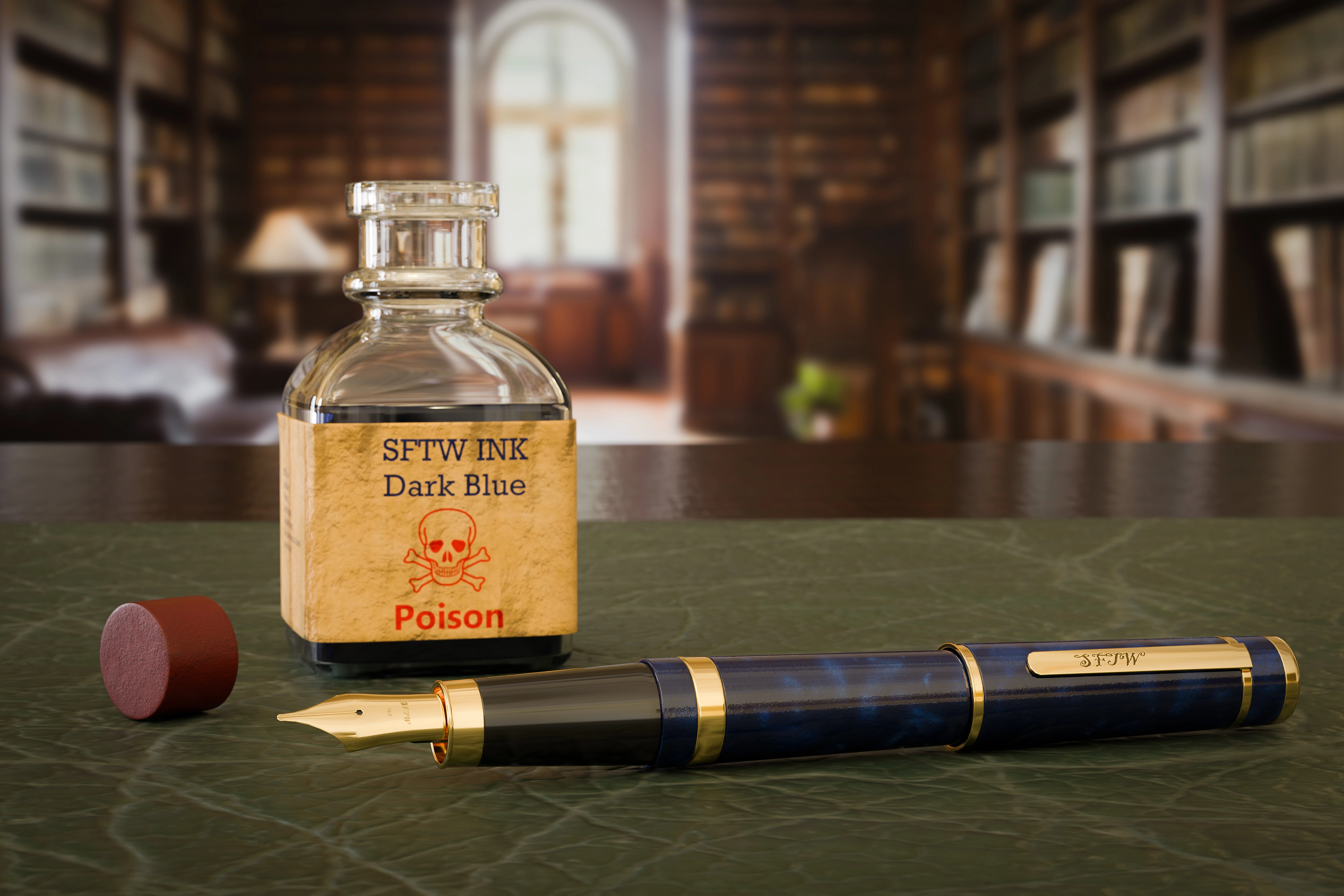 This week something a bit different. I heard the phrase 'Poison Pen' in a TV drama recently and my thoughts arrived at the image below. Made in 3D, the objects on the 'desk' are from Substance 3D assets, which I textured, along with the desk, in Substance Painter. The background was AI generated in Photoshop, using Firefly, and blurred to match the image before taking into Blender prior to rendering. Finishing was in Photoshop.