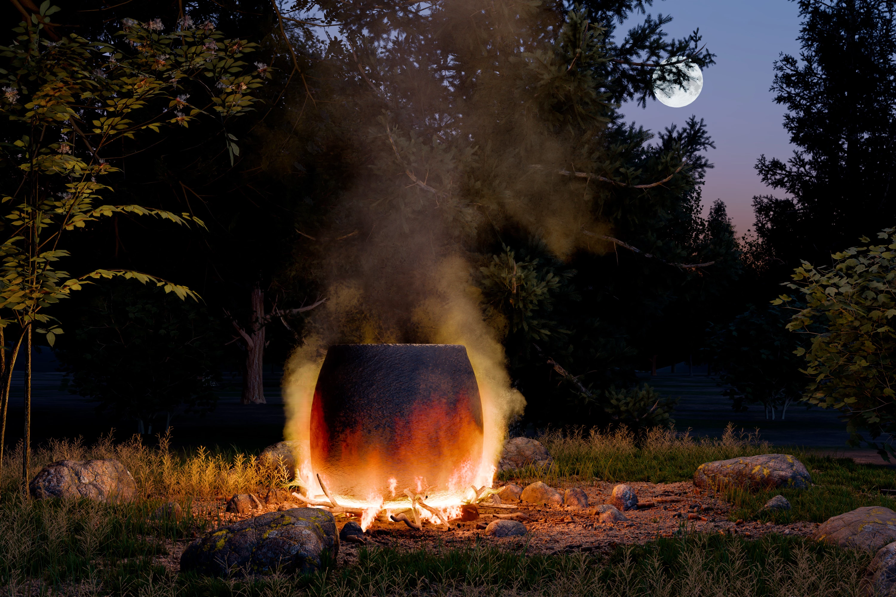 During the two week period of this challenge, we have Halloween coming up. I got to thinking of Shakespeare's witches in Macbeth chanting 'Double, double toil and trouble; Fire burn and cauldron bubble'. So, I've built a cauldron scene in Blender 3D using a fluid simulation for the fire and smoke, textured it in Adobe Substance Painter and finished the rendered image in Photoshop adding the moon surface from a NASA image.. What can you now do to bring it to life? For those that enjoy some realism, it poses challenges with the lighting, from the fire, and also the retention of the smoke and steam in front of any mid ground subjects. For other styles - just go for it. 🙂