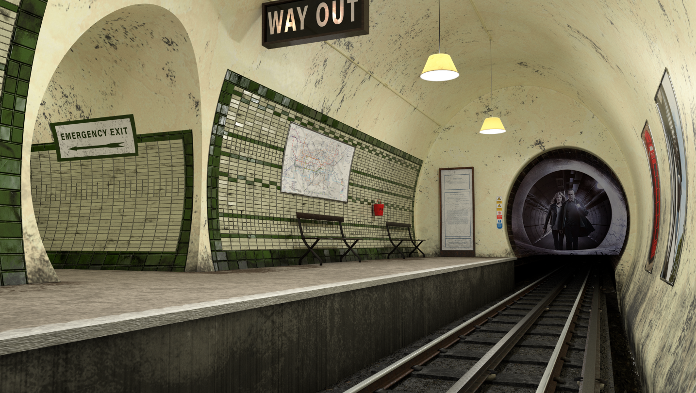 This tube station is a 3D render which I modelled, based on a scene from a James Bond movie (Die Another Day). It is not an exact replica of the film scene but it is loosely based on the station features and camera viewpoint. As is the way with these things, it took a bit longer to make than I initially thought. However, I learnt a few things along the way so it was a good exercise in 3D modelling and texturing.