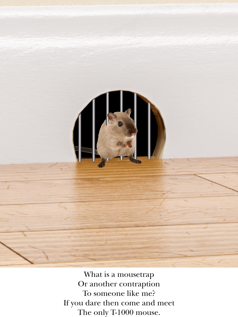 Jacob - I like the cat hiding in the vase - clever cat! Terminator mouse sounds scary