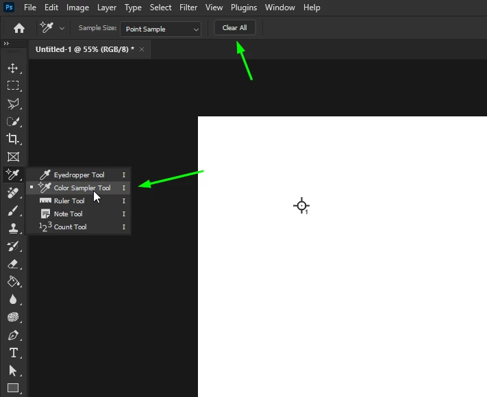 @michah21007596 select the color sampler tool and then click on clear all