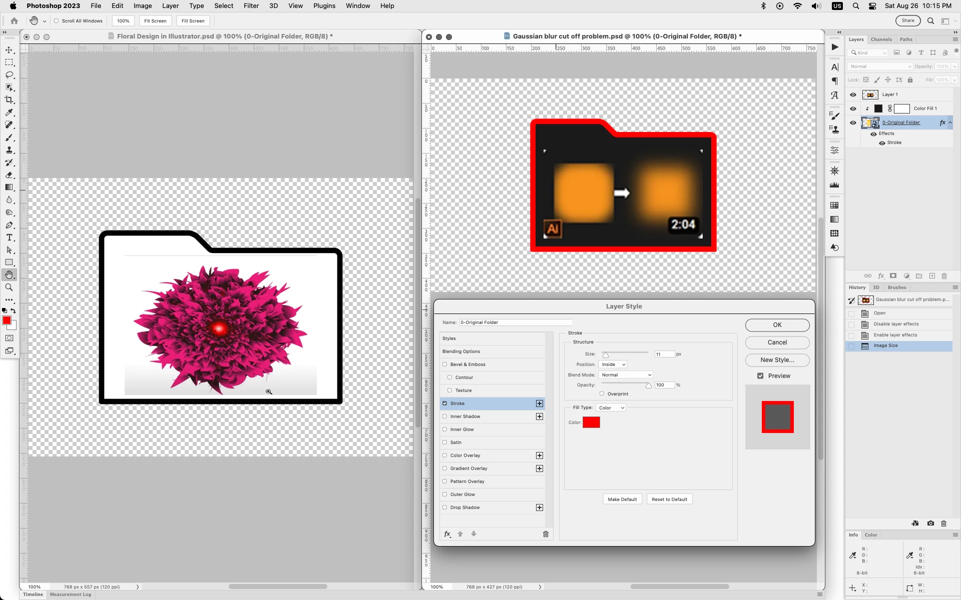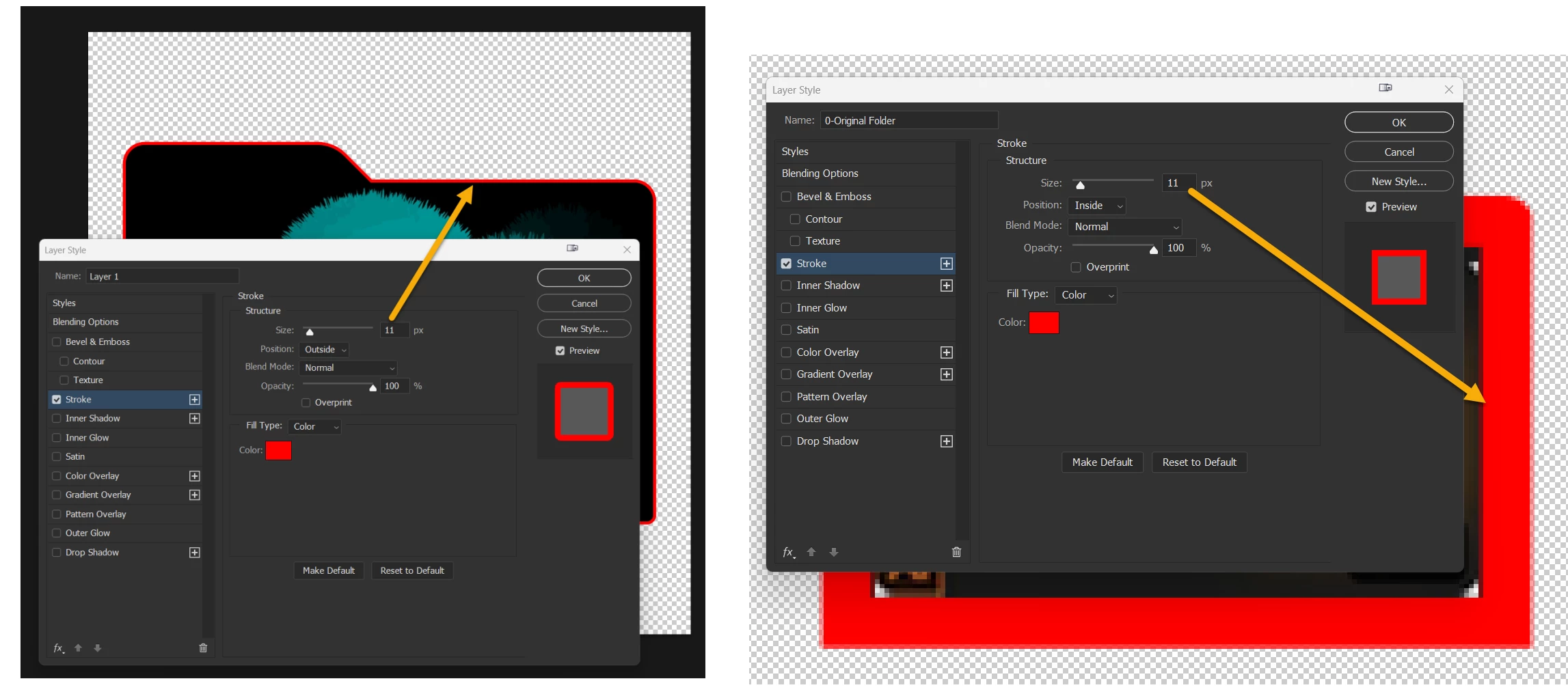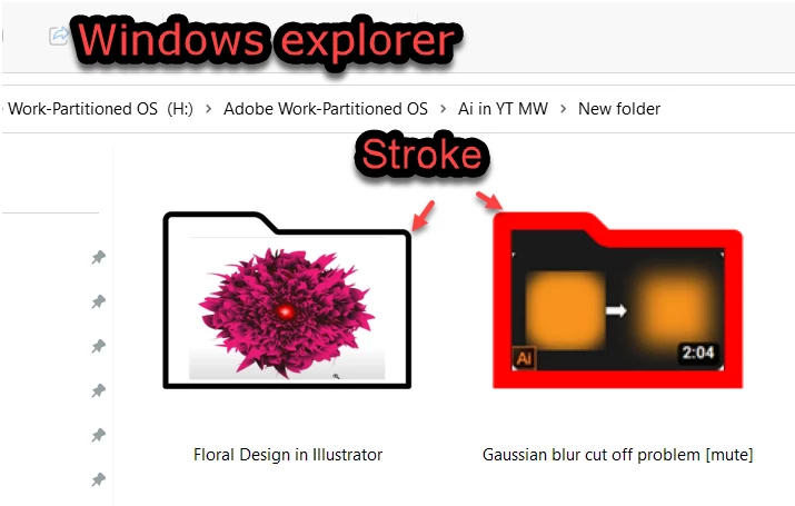 You can see in the Windows Explorer folder stroke sizes seems different. But in the window that determine stroke size number is same which is 11. What is the reason for this?