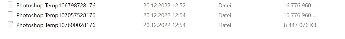 I just got an error that my scratch disk is full. As I checked, there were three Photoshop temp files in there, although I have plenty of RAM available (about 40GB). Even after starting Photoshop with no file open, a temp file is immediately created. What's that about?