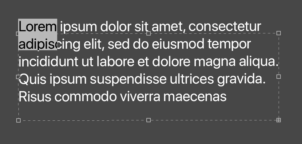 Line text: Look at the little dot below the "L". That's where the start of the line of text is. However now, much like the paragraph text, the line of text is up too high. Also the selected text appears to be almost two-lines tall.