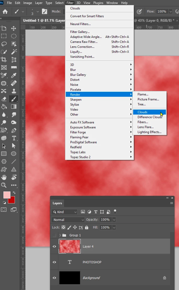 Go Filter > Render > Clouds