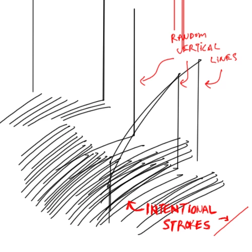 The lines in the photos happen to be vertical, but sometimes they are horizontal, or diagonal. In any case they are always in the same direction within any specific session.