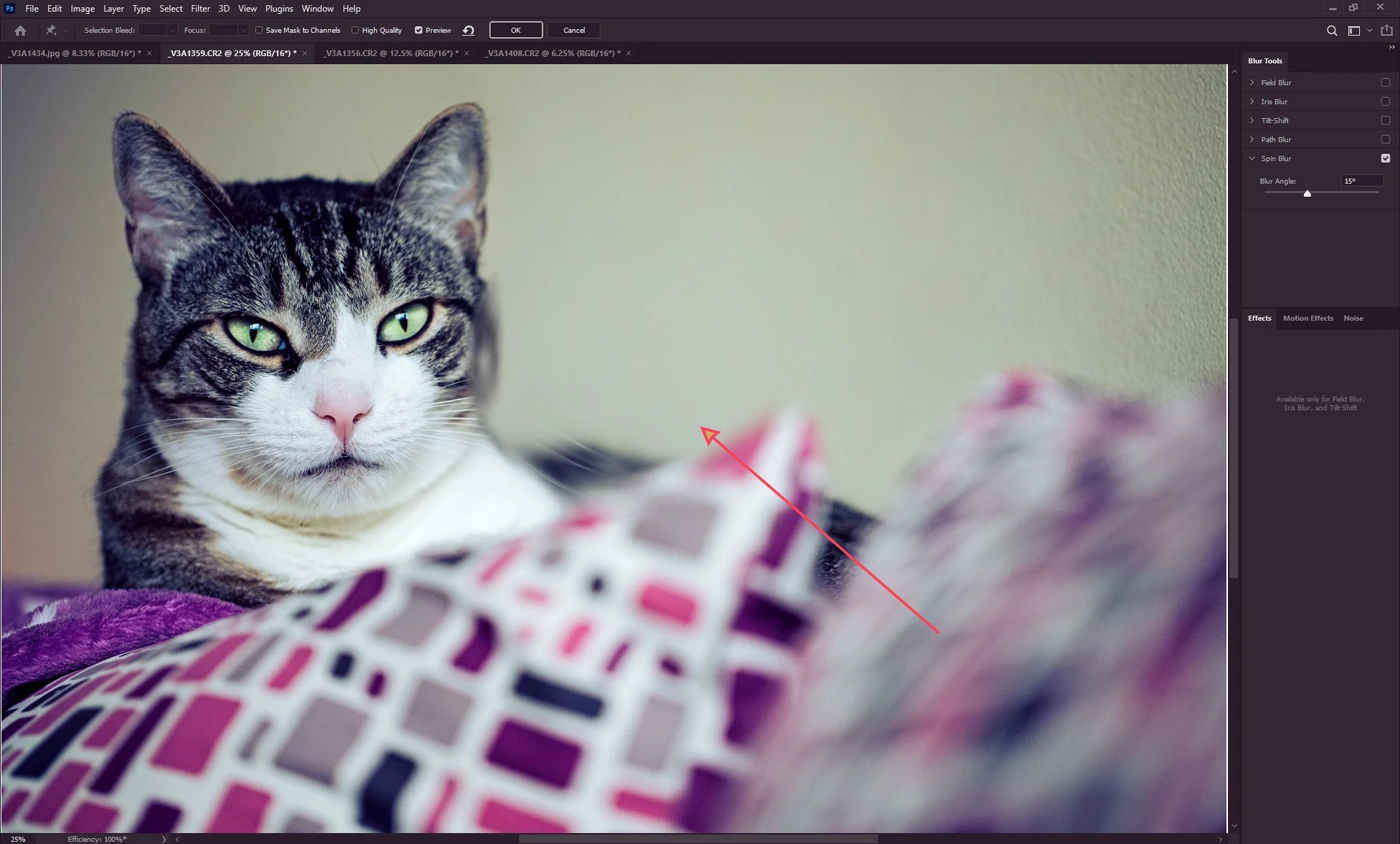 When you select Blue Gallery and then any of the Blur effects, normally you get tool guides on the screen to help you rotate, enlarge or add more/less blur. But here, as shown on the screenshot, I see nothing. It's just a swirl of blur on the center, without any guide.