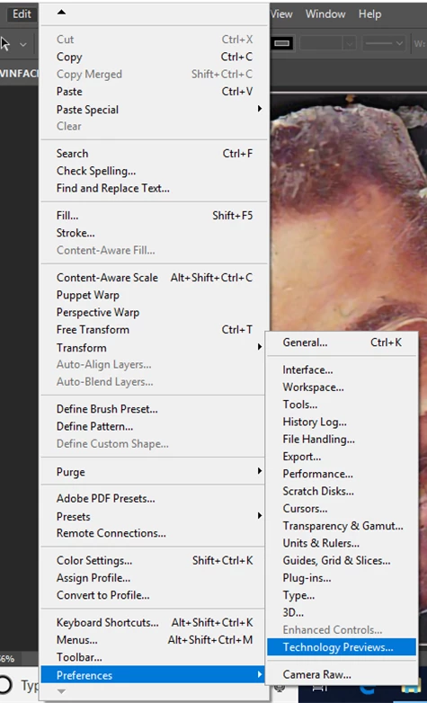 EDIT>PREFERENCES>TECHNOLOGIES PREVIEWS >
