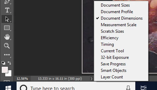 THIS RESULTED IN AN IMAGE THAT BECAME 13.333INCHES X 16.11 INCHES (300PPi) ACCORDING TO THE DOCUMENT DIMENSIONS INFORMATION
