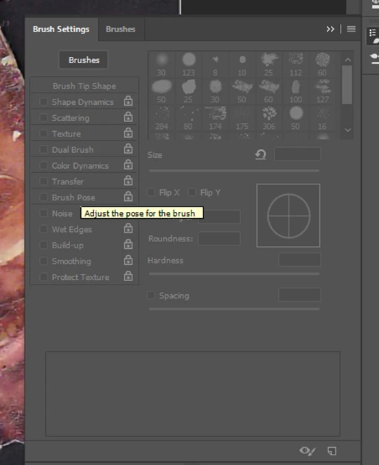 I’ve gone into brush settings, but everything is grayed out, and won’t allow me to make any changes,