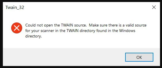 But after I got the above error message, I also went into the Windows folder and there was a folder called: C:\Windows\twain_32 and so I put a copy of the Twain driver file in there too. I also created the folder C:\Windows\TWAIN and put a copy of the Twain driver file in there too.