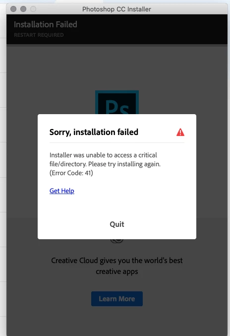 Unable to install Photoshop CC 2019 while running Mac OS Catalina 10.15.7