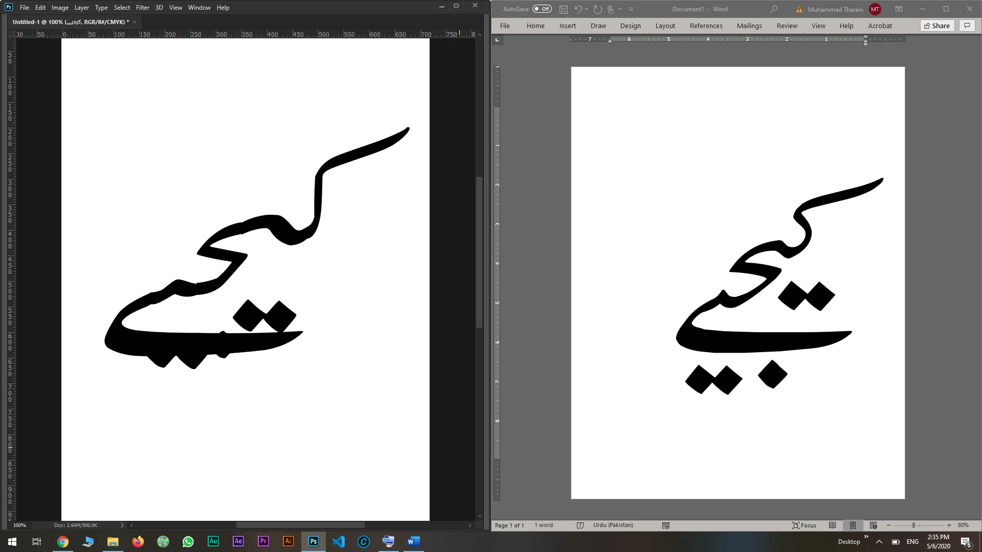 I am facing this problem alot now. Whenever I type in URDU in Photoshop the text feel distorted and shows kerning issues. While same font works totally fine on Microsoft Word. I am sharing side by side screenshot for comparison.
