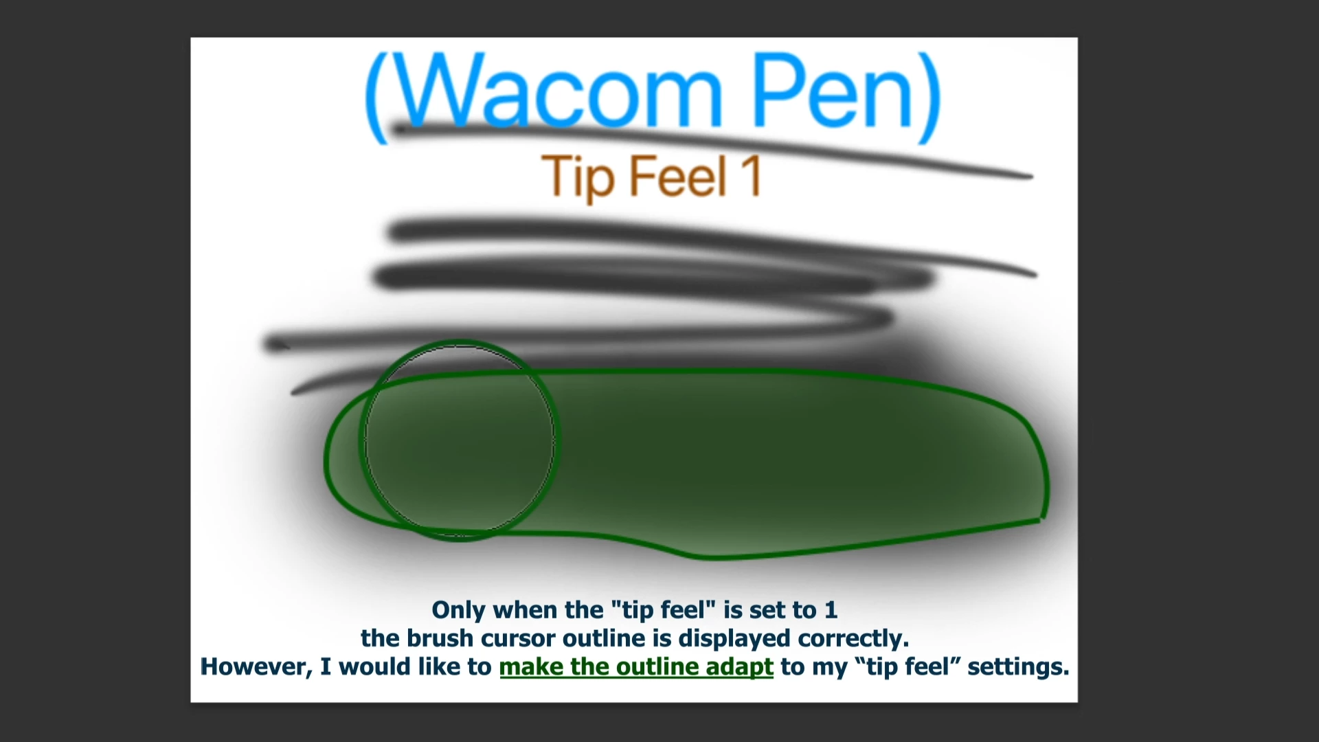 The size appears as normal when using a mouse or with the pen set to Tip Feel 1. However, it doesn't adjust to the correct size when I increase the Tip Feel settings. I hope I hope you are able to provide some assistance.
