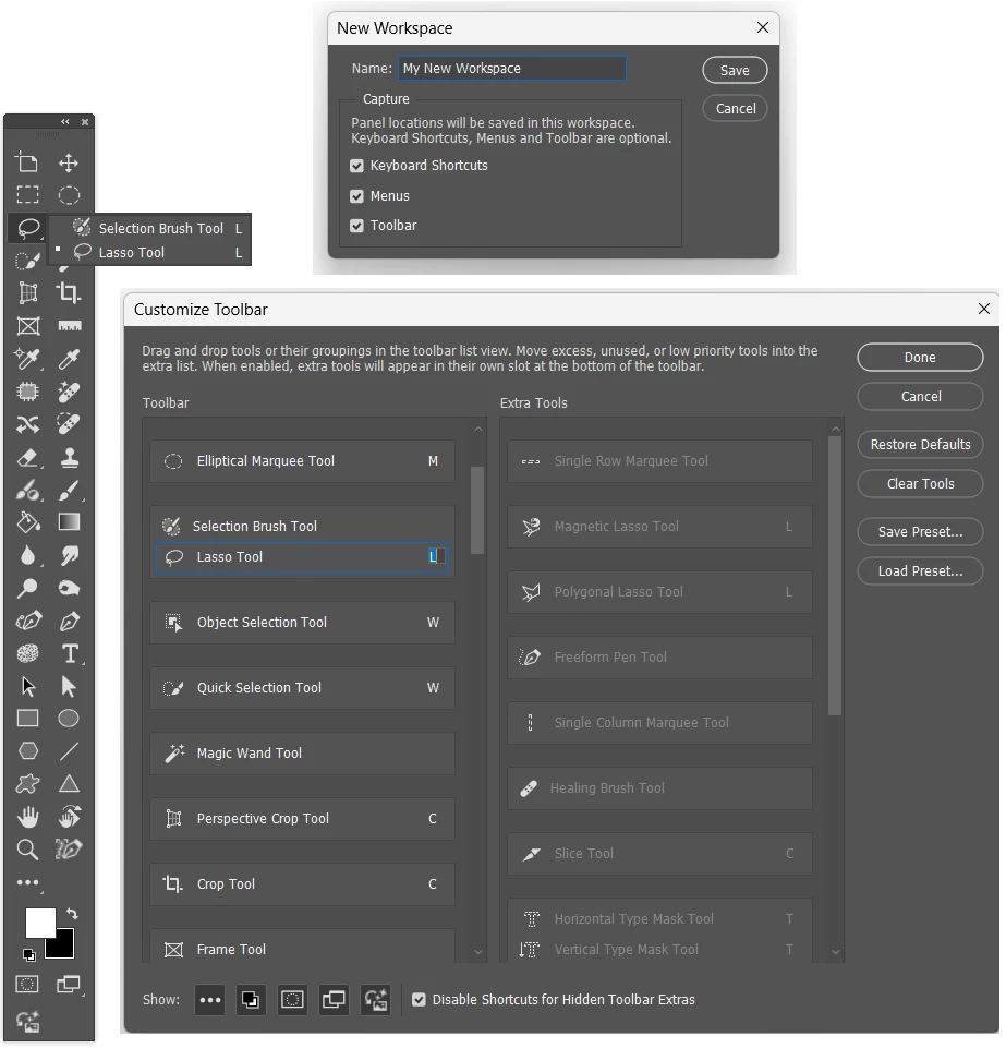 I noticed that Photoshop has received another update, and the icons have been rearranged. Previously, the Lasso tool was located in the top left corner. I used to select the Lasso tool, outline some jeans to remove wrinkles, apply Generative AI, and achieve great results quickly.