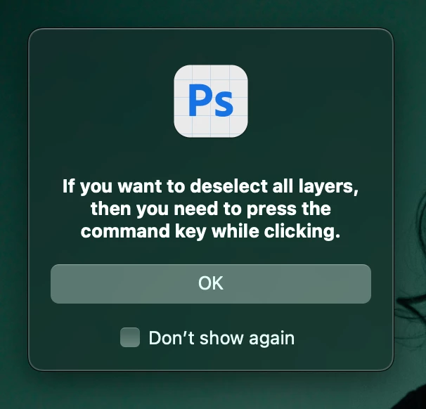 Since updating photoshop beta I've noticed i can no longer deselect layers by just clicking an empty area in the layers panel. Now if i do that I get a message saying I need to press command and click to do that. Why?