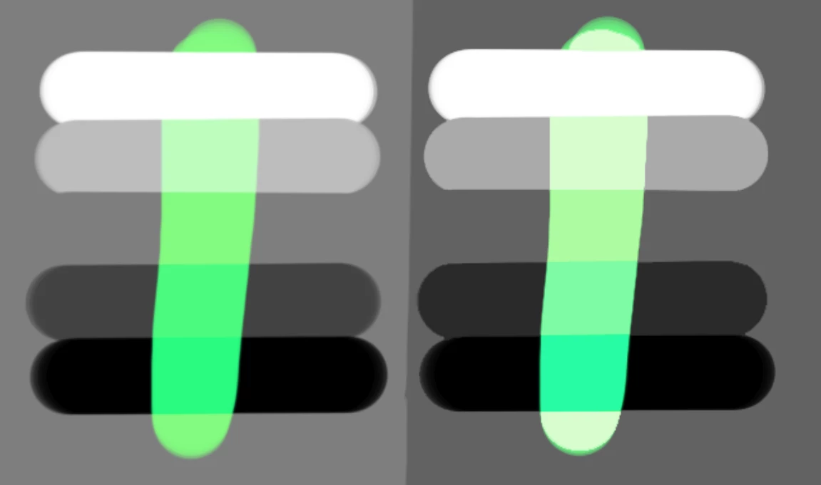 Right is opacity at 50% using Oklab method (simulated)