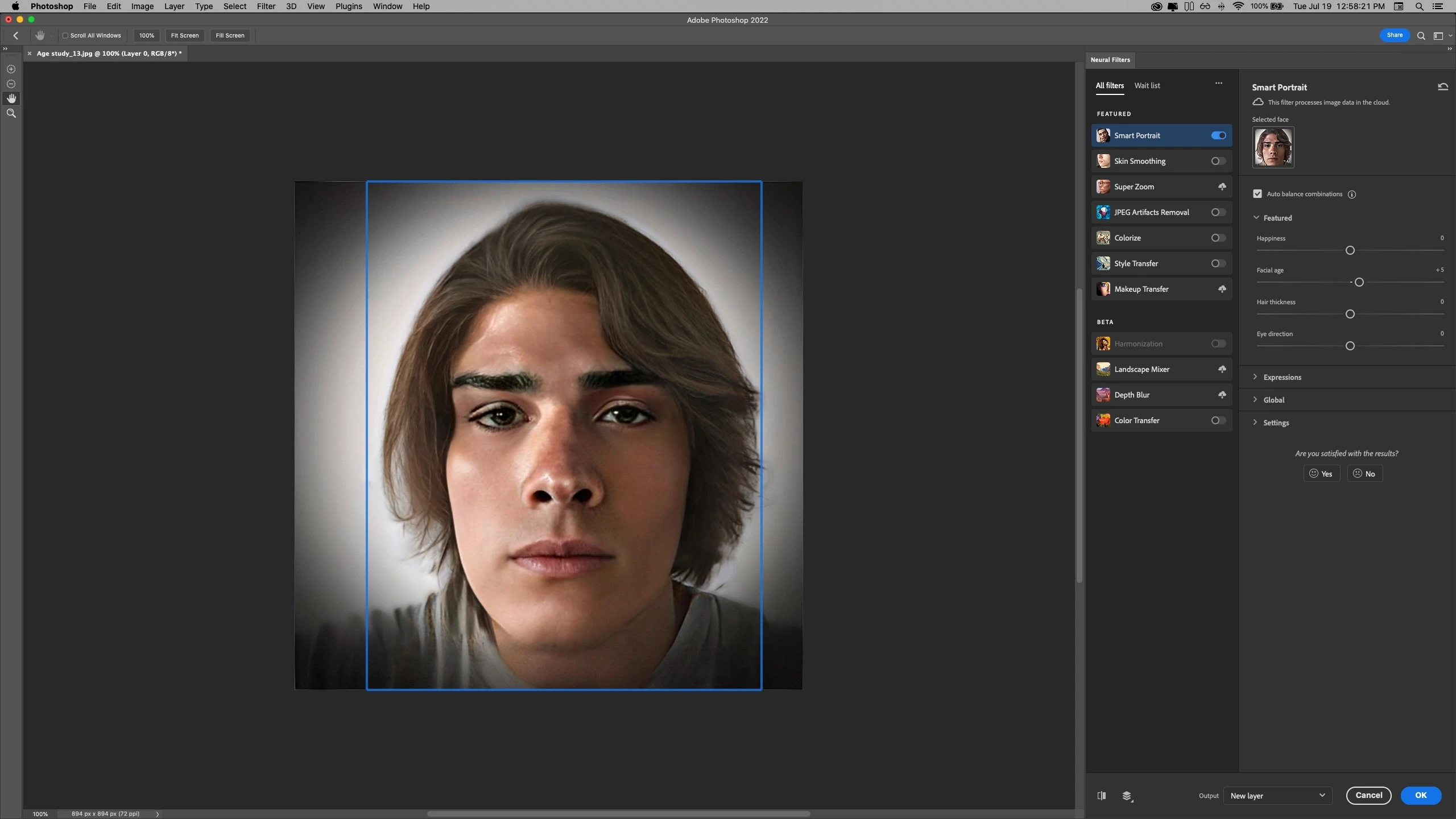 Here is an image for which the FACIAL AGE" filter is applied with only a +5 point correction: