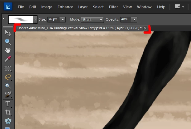 Hello there, I have Photoshop Elements 10 and each time I hover or quickly run my mouse over the image taps, right under where the settings for tools would be (I have marked the said tap in the picture below), a file/image location pops up in a long thin box and then goes away. It is very distracting to say the least because I usually work pretty fast and fx adjust my brush size alot and thus cross the taps repeatedly with my mouse which causes the said box to pop up and disappear numerous times. Is there any way to turn that off?