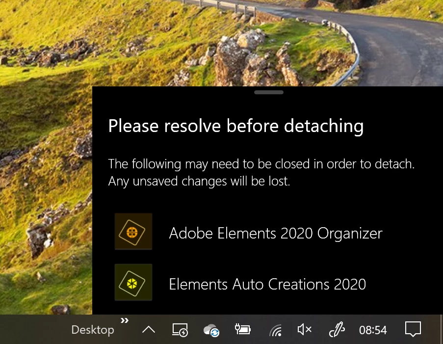 When I started Adobe Photoshop Elements 2020, auto Creations was started in the background and this had a strange effect on my Surface Book 2 laptop. The software detach button showed action was required, and when I clicked on the button I saw that there was an outstanding issue with AutoCreations, and I could not detach my screen using either the software or hardware buttons. Once I killed the process "Adobe Auto Creations", everything went back to normal. Have had to turn off all auto creations content in Adobe Organizer, otherwise I got the problem every time I start PhotoShop. Has anyone got any ideas?