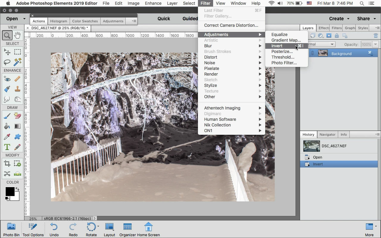 hi all is there a way in elements to turn a photo into a negative.