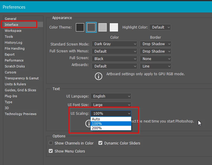 I have a 4K laptop and suddenly all the Photoshop menus, icons and buttons have shrunk to a tiny unreadable size. (All my other windows applications are fine)