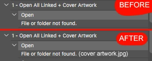 That way we would be able to know what file/folder is trying to open. If I go back to an action I created 5 years ago, it's hard to remember what Photoshop is trying to open. Maybe I still have that file, but it's just in a different location. If I knew the name of the file and its original path, I could at least remember what I was trying to achieve.