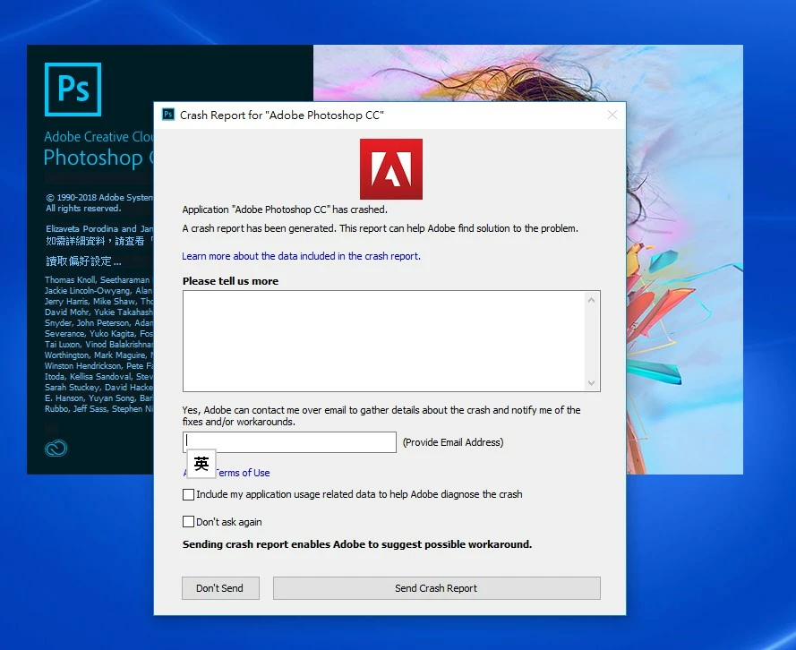 Could you please take a look at this article Photoshop CC 2018 crashes at launch due to Adobe Color Engine and check if the app crash is related to the color engine?