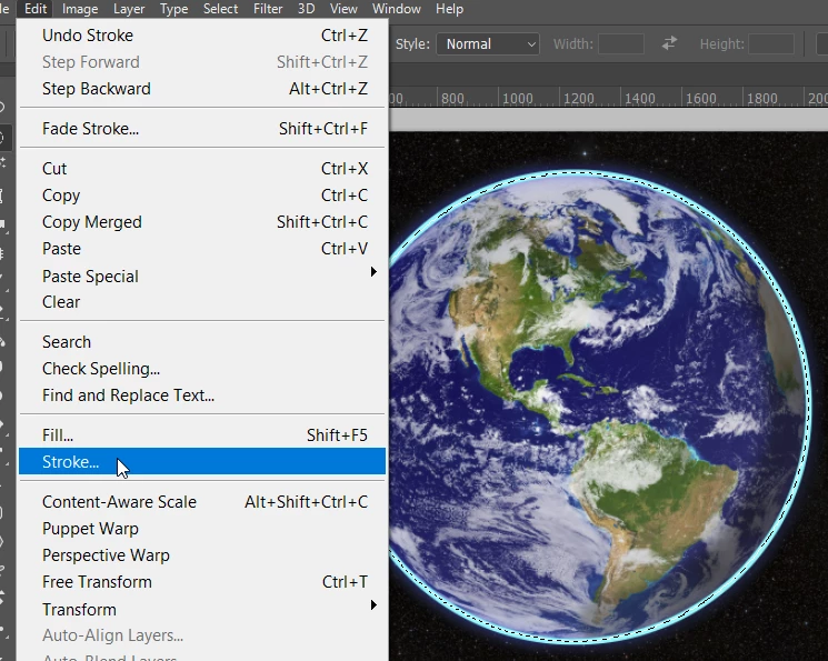 Select the globe as before, and go Edit > Stroke on a new layer choosing Centre