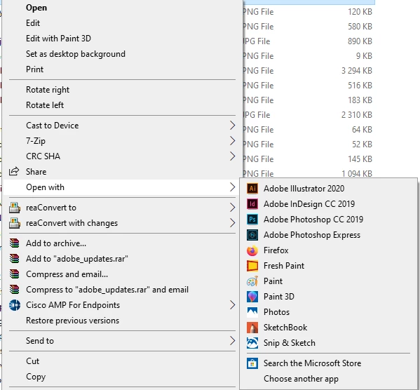 I have two PS version installed. PS 20.0.8 (CC 2019) and 21.0.2 (CC 2020) When I open image files from either local drives or external drives they always open in the oldest PS version. When I'm able to right click and define another PS version to open the files (Choose another app) it lasts just for that single file. The next time I open an image file (PSD, jpeg, png, gif) it goes back to the old default. When I choose PS 2020 from my system to open files they just open it directly, I'm not able to choose that app as default in W10. When I open files from external devices where I'm not able to choose another app it also always open in the old PS version and not the newest. However, when I already have the CC 2020 version open then my image files opens there when opened from file explorer, Bridge or external drives. But it's very annoying that they never open in CC 2020 when that application is not opened. On my desktop I only have the CC 2020 version.